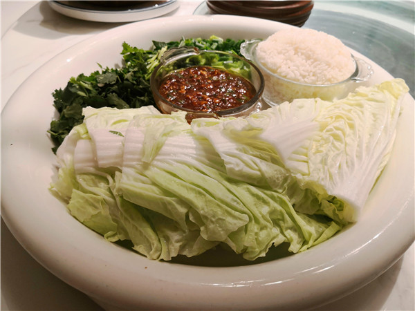 尤其扎眼的,正對大門的明廚亮灶上的幾塊牌匾,一下子就勾起人的食欲:老式熏豬手、手工燒老雞、烏蘇里江鰉魚、興凱湖大白魚、查干湖胖頭魚、火夫灶羊腿。這些都是地道的東北味??!據(jù)介紹,老板湯長明是黑龍江“龍菜”系傳承領(lǐng)軍人物,祖孫四代傳承東北菜廚藝,現(xiàn)在關(guān)東大院餐飲集團董事長。當然,許多大家耳熟能詳?shù)拇蟊姴艘矐斜M有,如:殺豬菜、小雞燉蘑菇、得莫利燉魚、大鵝燉寬粉、黑皮肘子、酸菜粉、地三鮮、東北鹵水點豆腐、金湯遼參、黃魚燒土豆、紅燒肉黃金勾......看得人口水直冒。加之,整個門店的布局也十分特別,一樓明廚亮灶之外,主要是大堂散座,周邊還有不少的書籍、酒架;二樓主要是包間,簡潔明亮??梢哉f,在此可以感受到一股濃濃的關(guān)東風情。
