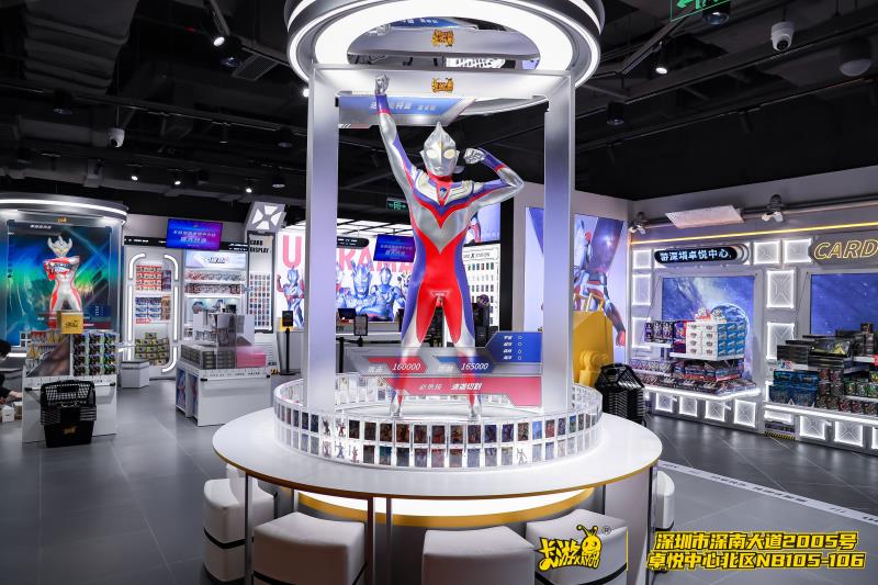 卡游動漫一貫以來打造親子互動體驗的愿景,在“趣發(fā)現(xiàn)、去成就”的道路上始終前進(jìn),不斷為每一個卡牌愛好者和親子家庭帶來更多的歡樂、營造更多的幸福和構(gòu)筑更多的溫暖。作為城市首家線下直營店的卡游北京富力廣場店和卡游深圳卓悅中心店就是典型代表,他們不僅完美繼承了如“奧特曼1:1等身立像圓桌”和“英雄對決專區(qū)”等興趣社交區(qū)域,還配合商場“新時尚、新生活、新主張”的理念,在多種玩法的加持下,將藝術(shù)、美學(xué)、生活融于一體,擁有無限的探索可能。