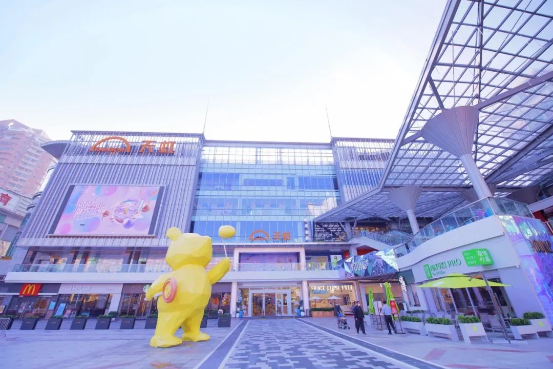 常平天虹購(gòu)物中心擁有特色十足的盒子+情景主題街區(qū)建筑布局。多首層式設(shè)計(jì),讓顧客可以自由地從不同樓層進(jìn)入商場(chǎng),打破傳統(tǒng)“盒子”建筑的封閉空間感,使逛街充滿樂趣。購(gòu)物中心門前的常平首家 IP休閑歡樂廣場(chǎng),擁有6米高泡泡熊雕塑、燈光音樂噴泉等娛樂設(shè)施,為周邊居民創(chuàng)造一個(gè)可玩、可親、可打卡的戶外體驗(yàn)空間。