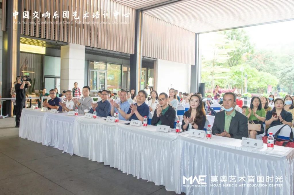 中國(guó)交響樂(lè)團(tuán)副團(tuán)長(zhǎng)尹波、南山區(qū)文化廣電旅游體育局黨組成員、副局長(zhǎng)任艷峰、中國(guó)交響樂(lè)團(tuán)藝術(shù)培訓(xùn)中心主任王曉柯、中國(guó)交響樂(lè)團(tuán)藝術(shù)培訓(xùn)中心深圳負(fù)責(zé)人韓仕英、華僑城歡樂(lè)時(shí)光項(xiàng)目負(fù)責(zé)人鄧皋峰、深圳市關(guān)愛(ài)行動(dòng)基金會(huì)副秘書(shū)長(zhǎng)魏平、莫奧藝術(shù)音畫(huà)時(shí)光校長(zhǎng)王婷、莫奧藝術(shù)音畫(huà)時(shí)光行政總監(jiān)曹克等嘉賓出席了開(kāi)幕儀式。