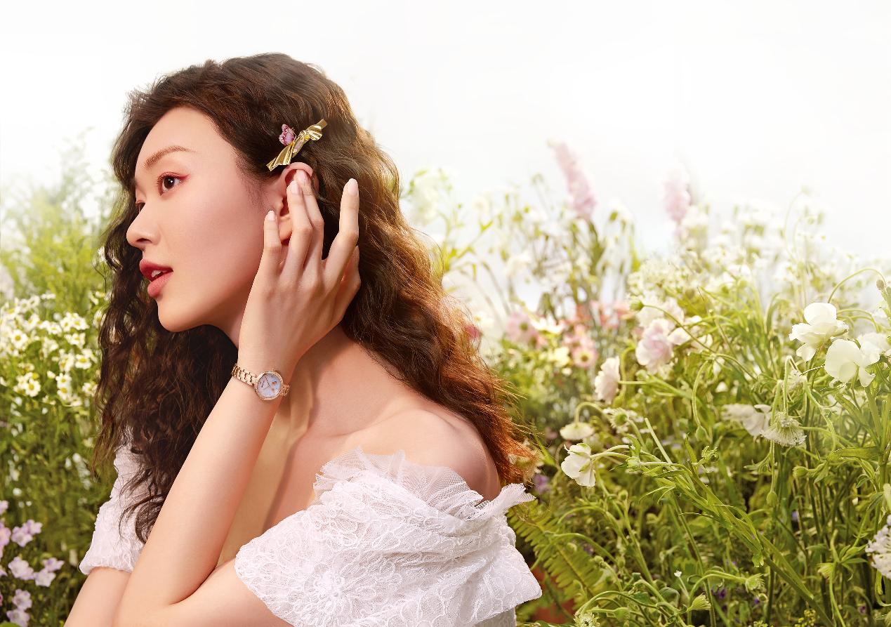 ?本次天天王表聯(lián)名 She’s飾品推出的新品腕表,就很好利用了蝴蝶這一元素,遠(yuǎn)觀貝母表盤下方兩只蝴蝶深情對望翩然起舞,細(xì)看竟還有滿盤的裸色印壓蝴蝶,著實(shí)精致巧妙,不同于《愛蓮說》中的“可遠(yuǎn)觀而不可褻玩焉,蝴蝶腕表可謂是兼具觀賞和把玩兩大功能,優(yōu)雅時(shí)尚又充滿浪漫色彩。