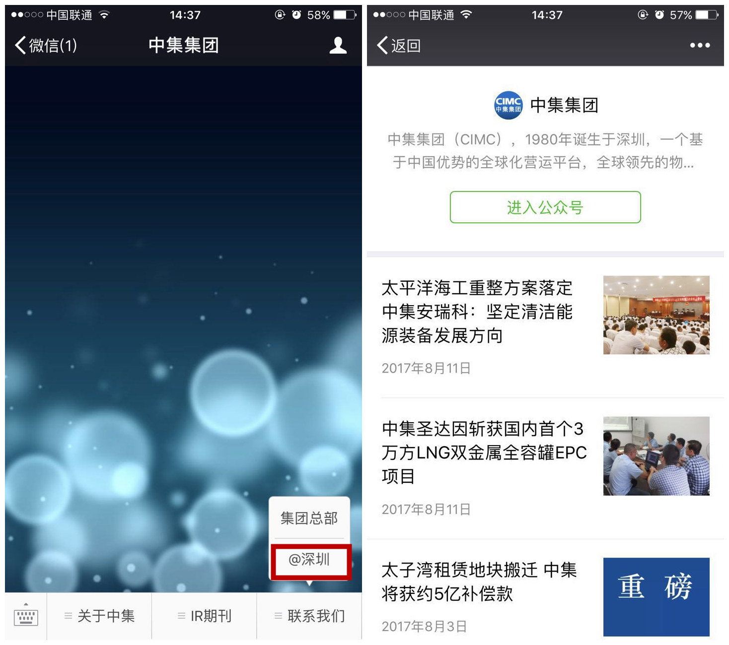 深圳新聞網(wǎng)訊(記者 陳飛)近日,中國(guó)國(guó)際海運(yùn)集裝箱(集團(tuán))股份有限公司(簡(jiǎn)稱(chēng):中集集團(tuán))官方微信公眾號(hào)“中集集團(tuán)”正式入駐@深圳平臺(tái)。
