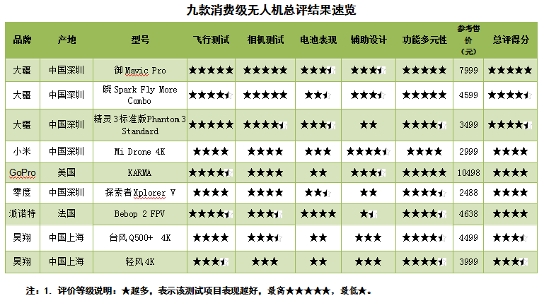 總評:國產(chǎn)無人機(jī)完勝,前三名被深圳大疆包攬。