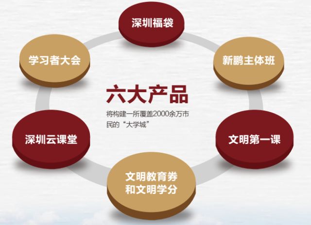 我們以構(gòu)建一個(gè)覆蓋2000余萬(wàn)市民的終身學(xué)習(xí)平臺(tái)、將深圳市打造成一個(gè)培養(yǎng)現(xiàn)代文明市民的“大學(xué)城”為愿景,推出新版深圳福袋、新鵬主體班、文明第一課、深圳云課堂、學(xué)習(xí)者大會(huì)等產(chǎn)品。