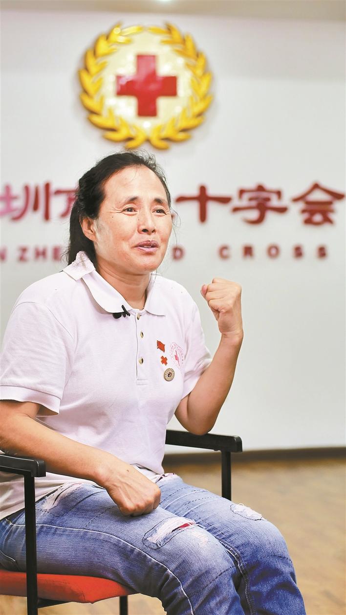 1997年,我從濟(jì)南市商河縣的農(nóng)村來到深圳,幫妹妹照看孩子。一次偶然的機(jī)會,我看到路邊一輛無償獻(xiàn)血車,車上寫著缺A、B、O型血,這讓我想起了小時候看過的小人書,白求恩大夫獻(xiàn)出300毫升鮮血挽救了八路軍傷員的生命,心想現(xiàn)在自己也有機(jī)會通過獻(xiàn)血去救助危重的病人,真的太好了。漸漸地,我成了深圳市紅十字會的“??汀保渤闪松钲谑屑t十字會的志愿者。至今,我志愿服務(wù)時間近6萬小時,無償獻(xiàn)血316次。