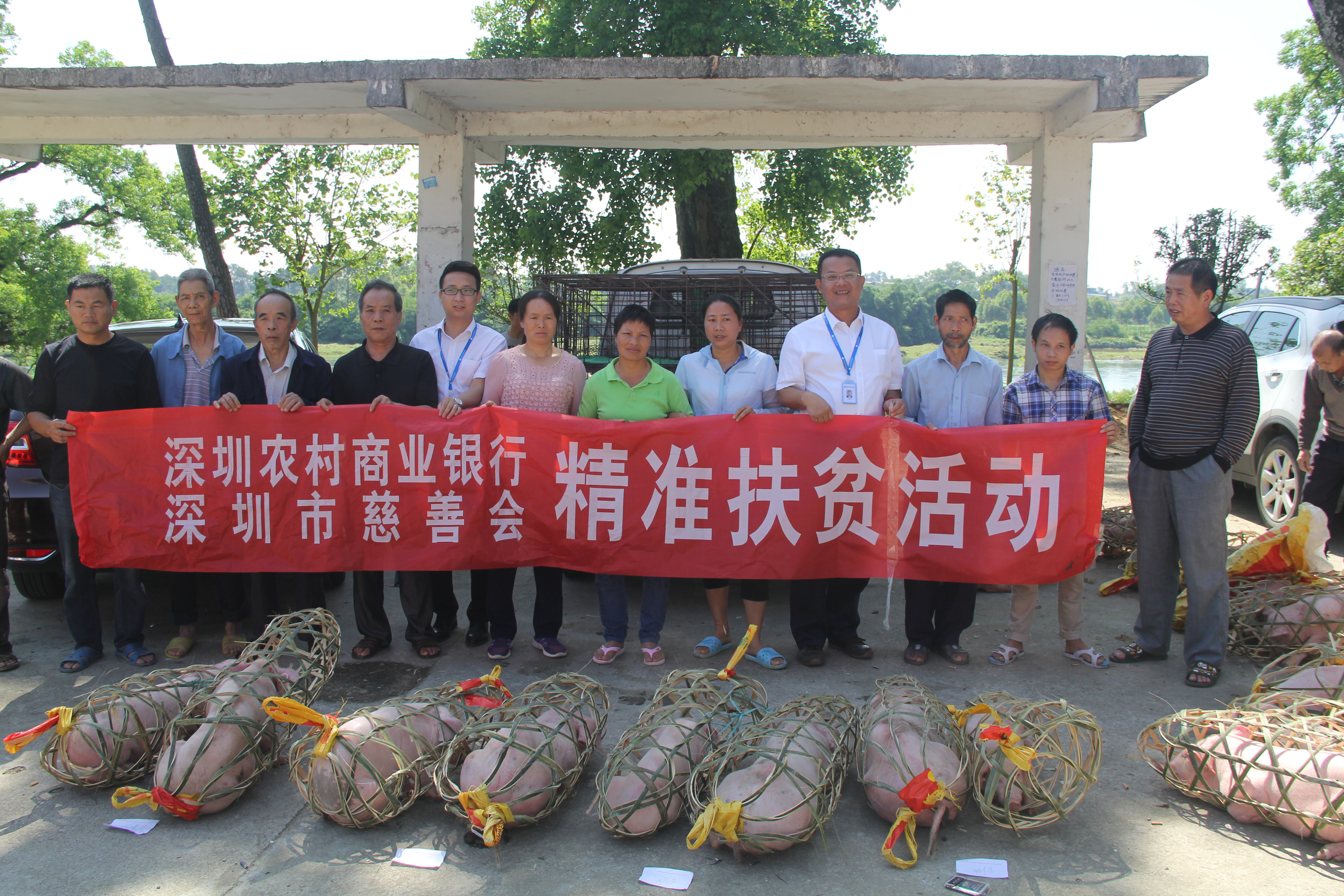 2017年,深圳農(nóng)商行的廣西6家機構(gòu)開展了“深桂心連心”精準扶貧活動,向所在地貧困戶免費發(fā)放農(nóng)業(yè)生產(chǎn)資料,通過采購等值的農(nóng)資(如雞、鴨、豬崽、農(nóng)作物種子與樹苗等)按戶發(fā)放給扶貧對象,待雞、鴨、豬崽和農(nóng)作物可出售時由廣西各機構(gòu)介紹銷售或負責(zé)回購,確保扶貧對象既能脫貧,又能提高致富能力。深桂心連心精準扶貧活動,共資助了299戶貧困戶,扶貧總投入為292879元。通過扶貧活動,帶動更多的貧困戶依靠辛勤勞動,脫貧致富。