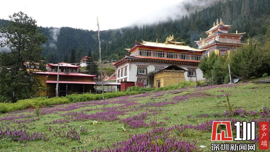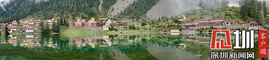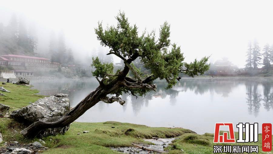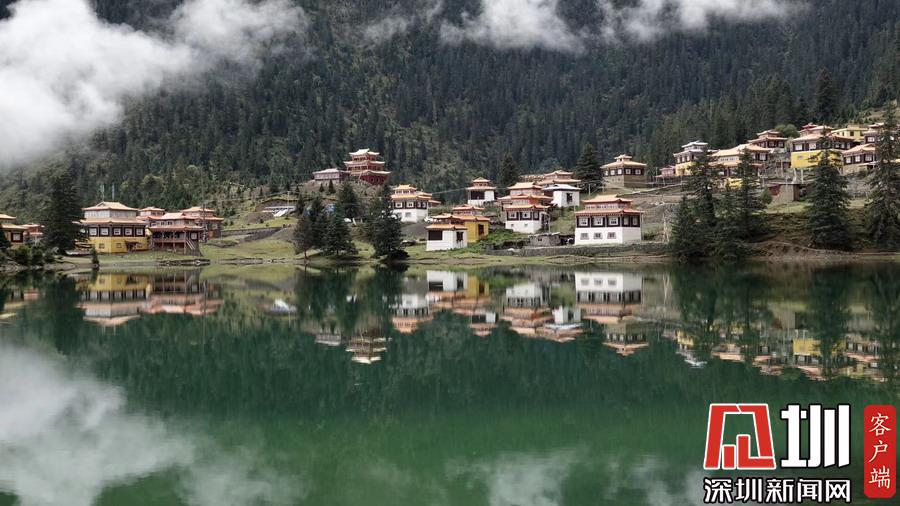 湖的四周是森林和由措卡寺寺僧主持修建的藏傳佛教各色建筑,它們時(shí)而云遮霧障,時(shí)而與藍(lán)天白云一起倒映在湖中。李仁奇攝