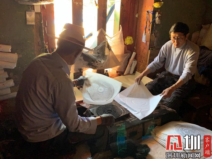 德格印經(jīng)院的印刷工藝大體可分裁紙、顏料加工、印刷、裝訂四個(gè)流程。又可細(xì)分裁紙、泡紙、兌墨、研磨、兌制朱砂、取版、印刷、晾曬、洗版、歸庫(kù)、分頁(yè)、核對(duì)、裝訂、打磨、刷色邊、包裝等十余道工序。李仁奇攝