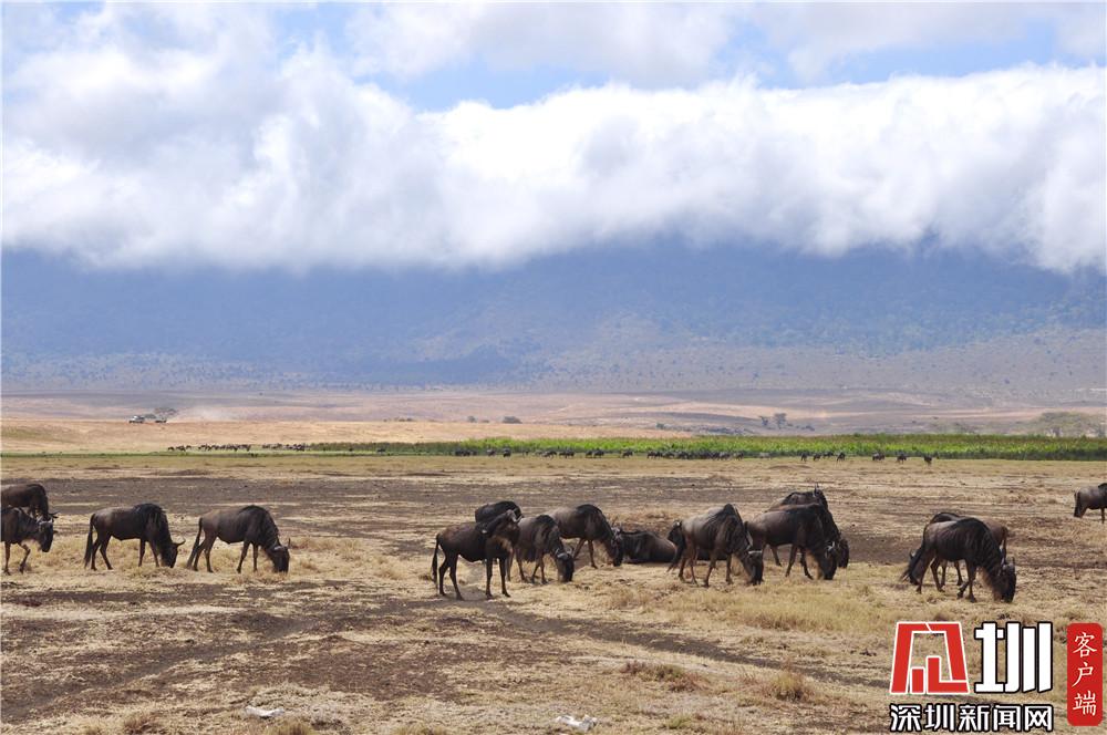 火山口周圍風光綺麗,棲居著各種野生動物,主要有野牛、角馬、斑馬、大羚羊、鬣狗、大象、河馬等,總數(shù)達3萬余頭。李仁奇攝