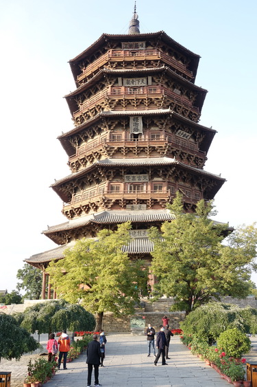 但是,一般游客用肉眼很難看出,近千年來,歷經(jīng)風雨、地震、戰(zhàn)爭和不當維修,這座世界現(xiàn)存最高大的木結構樓閣式佛塔,已扭曲變形。李仁奇攝