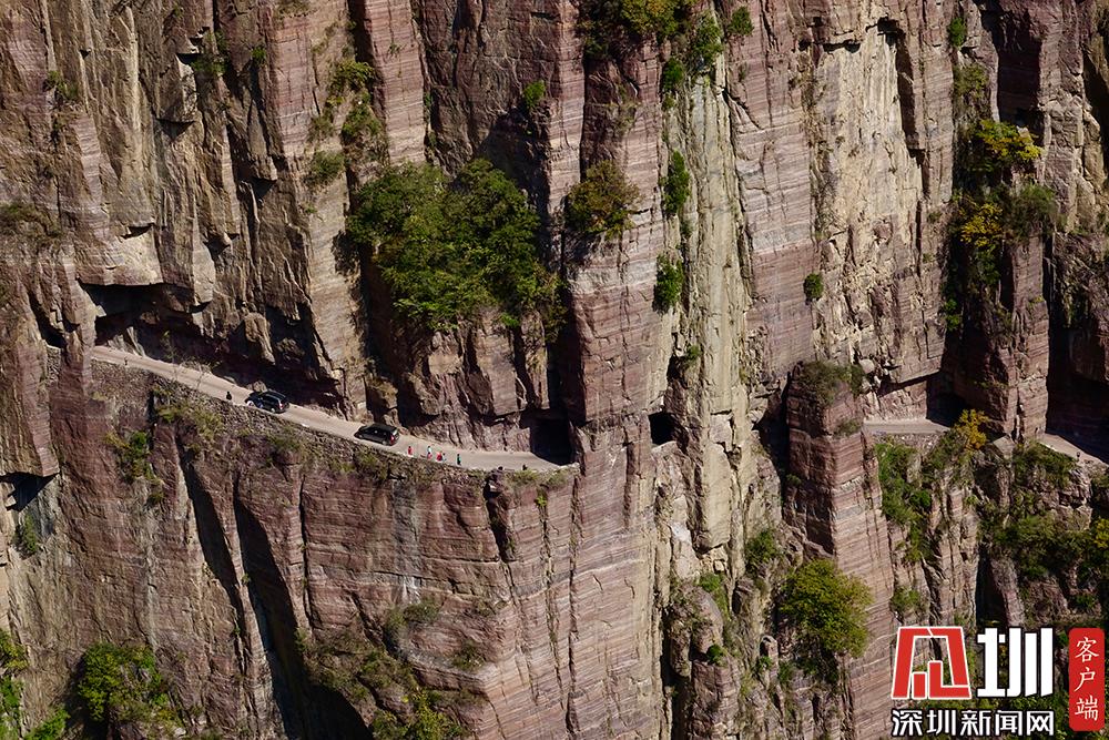 這條絕壁長廊,被日本裕田影視公司稱為“世界第九大奇跡”。圖為郭亮村絕壁長廊。李仁奇攝