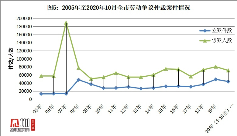 記者從發(fā)布會(huì)上獲悉,《勞動(dòng)合同法》頒布實(shí)施之前,勞動(dòng)爭(zhēng)議案件數(shù)量相對(duì)平穩(wěn),波動(dòng)不大。2008年前后受到《勞動(dòng)合同法》頒布實(shí)施和全球金融危機(jī)的雙重影響,進(jìn)入訴訟渠道的勞動(dòng)爭(zhēng)議案件呈井噴式增長(zhǎng)。2011年之后,隨著國(guó)內(nèi)外經(jīng)濟(jì)形勢(shì)好轉(zhuǎn)、用人單位用工方式的逐步規(guī)范以及政府主管部門(mén)執(zhí)法力度加大,勞資關(guān)系趨于穩(wěn)定,案件數(shù)量逐步回落。自2011年至今,深圳兩級(jí)法院受理的各類(lèi)勞動(dòng)爭(zhēng)議案件數(shù)量漸趨平穩(wěn),甚至有所下降。目前,案件數(shù)量已經(jīng)基本恢復(fù)至2008年之前的水平,但在全國(guó)范圍內(nèi),案件絕對(duì)數(shù)量仍然位于前列。