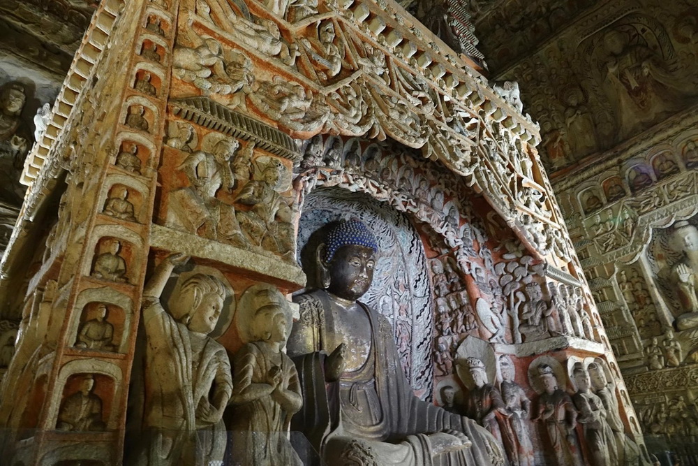 其造像氣勢宏偉,內容豐富多彩,壁畫氣魄宏大,想象力豐富,被譽為中國古代的藝術寶庫,觀賞價值和規(guī)模在我國四大石窟(另兩座是敦煌莫高窟、洛陽龍門石窟、天水麥積山石窟)中首屈一指。代表了5世紀至6世紀時期中國高超的佛教藝術成就。李仁奇 攝