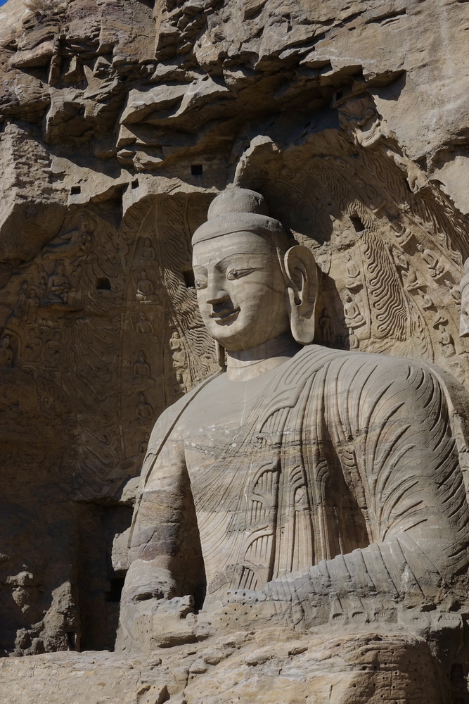 從外面看云岡石窟,經歷1500年時光的風雨侵襲,依然保持著挺拔的姿態(tài),不得不佩服古人當時的建筑工藝。李仁奇 攝