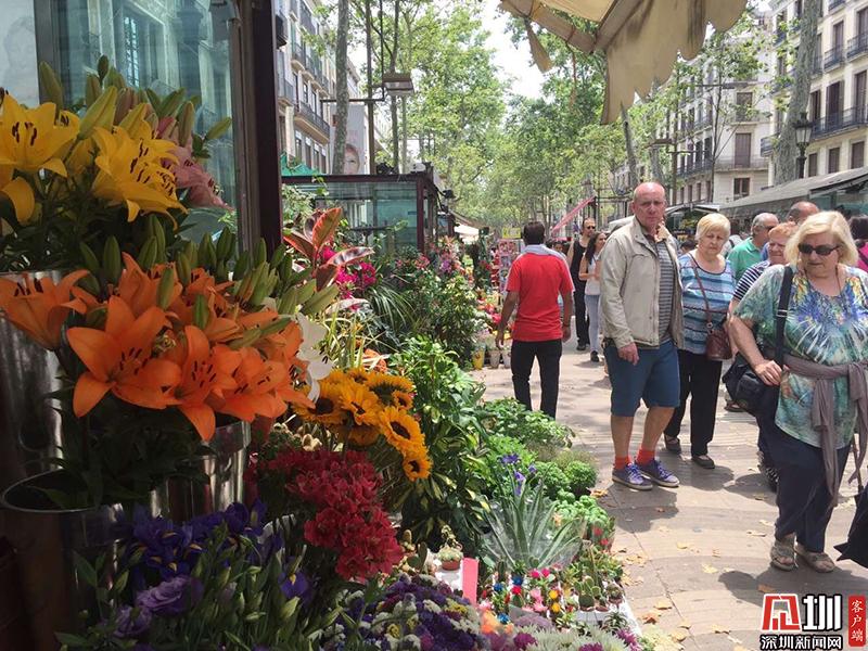 這條街連接著老城區(qū)加泰羅尼亞廣場和哥倫布紀念碑廣場兩個主要景點,每天游人如織。圖為蘭布瑯花街。李仁奇 攝
