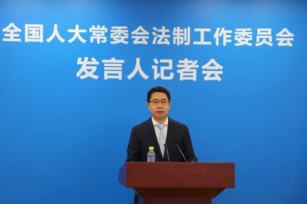 法工委發(fā)言人臧鐵偉向記者通報情況。攝影/《中國人大》全媒體記者?侯朝宣