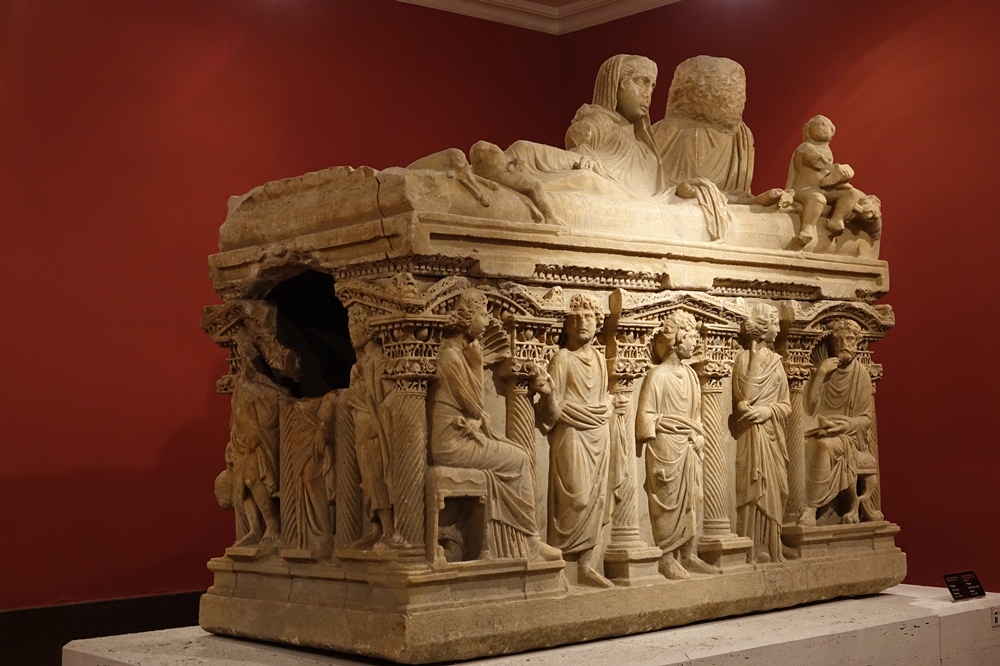 奧蕾莉亞.博蒂安和德米特里亞石棺,它的局部細(xì)節(jié)十分細(xì)膩生動,窄立面上有一個(gè)盜洞。李仁奇 攝