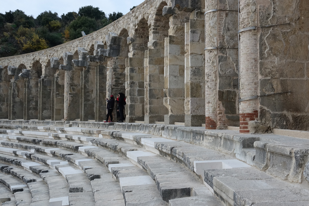 阿斯潘多斯劇場(chǎng)有著最為合理的聲學(xué)建筑結(jié)構(gòu),在不借助任何音響設(shè)備的情況下,舞臺(tái)聲音可以清晰地傳送到最后一排觀眾,體現(xiàn)了古羅馬人精湛的建筑技藝。李仁奇 攝