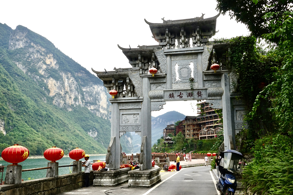 烏江畫(huà)廊的核心景區(qū)龔灘古鎮(zhèn)地處烏江、阿蓬江交匯處,距酉陽(yáng)城區(qū)70余公里,與重慶彭水縣和貴州省沿河縣毗鄰。李仁奇 攝