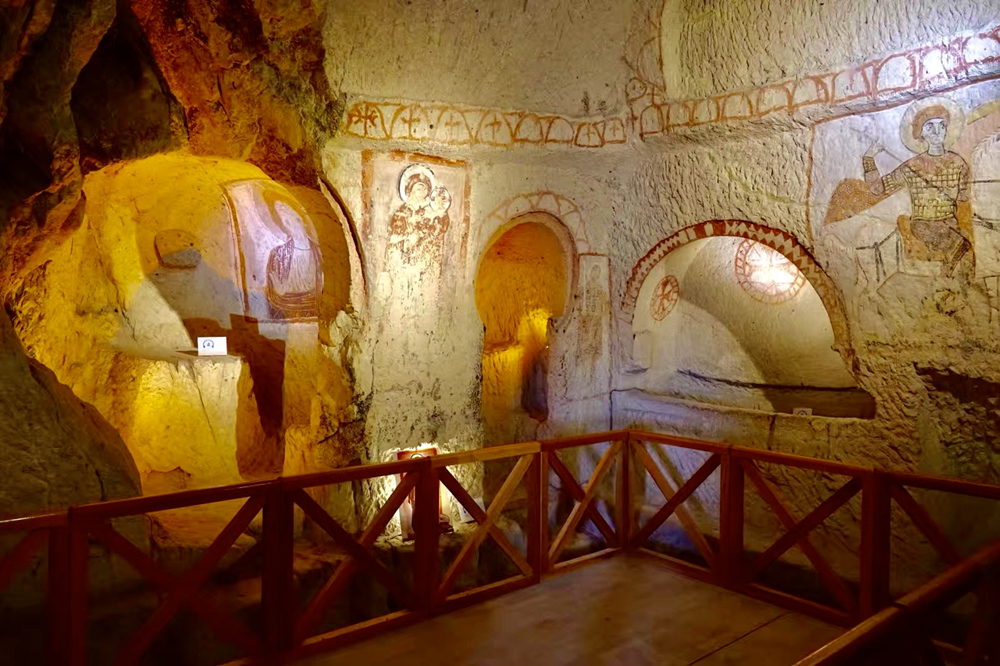 壁畫一般是《圣經(jīng)》中的人物畫像,一部分仍色彩鮮明,清晰可見(jiàn)。李仁奇 攝