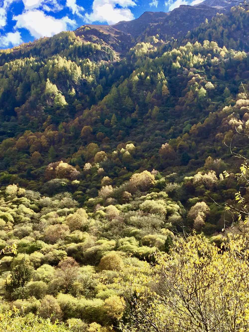 滿地的金黃,成片的針葉迎風簌簌而下,像是一場金色的雨,滿地的樹葉像是一層地毯。李仁奇 攝