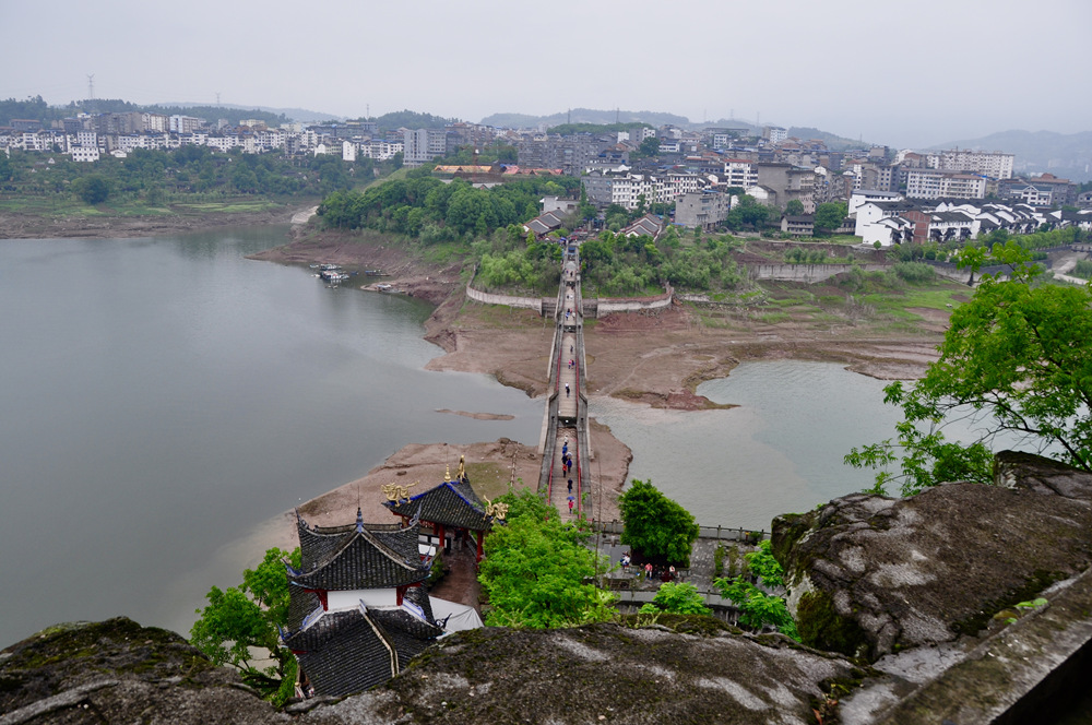 步入石寶寨,需要走過一座吊橋。李仁奇 攝
