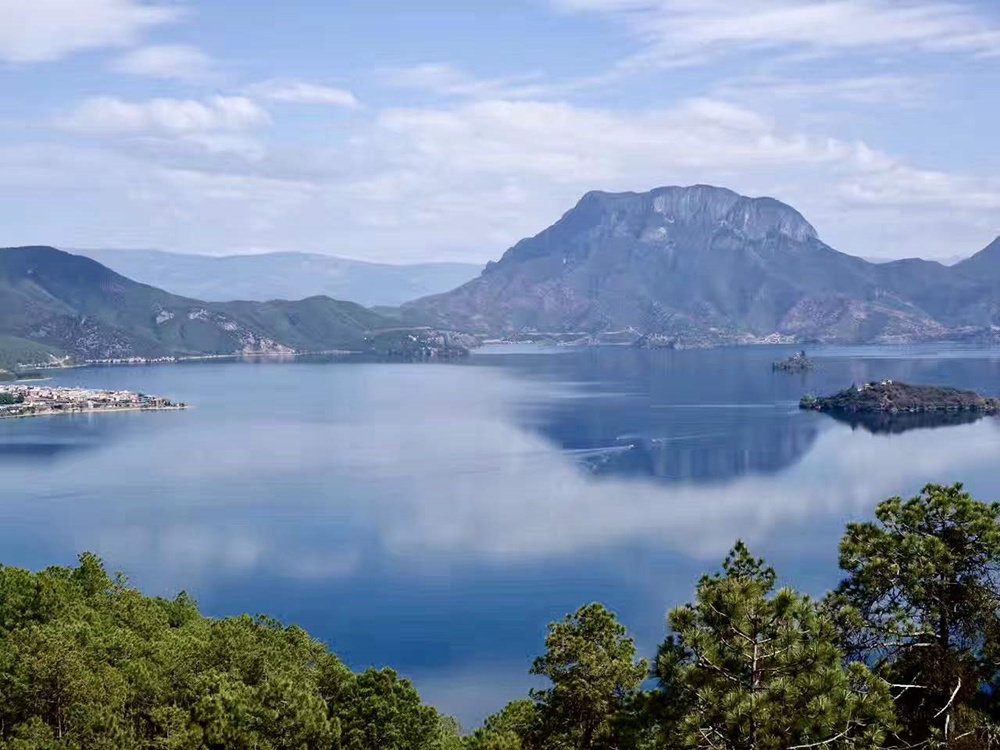 當(dāng)?shù)厝朔Q瀘沽湖為“謝納咪”,意為大海、母湖,從高處鳥瞰,如一只展翅的飛燕,被譽為“高原明珠”。李仁奇 攝