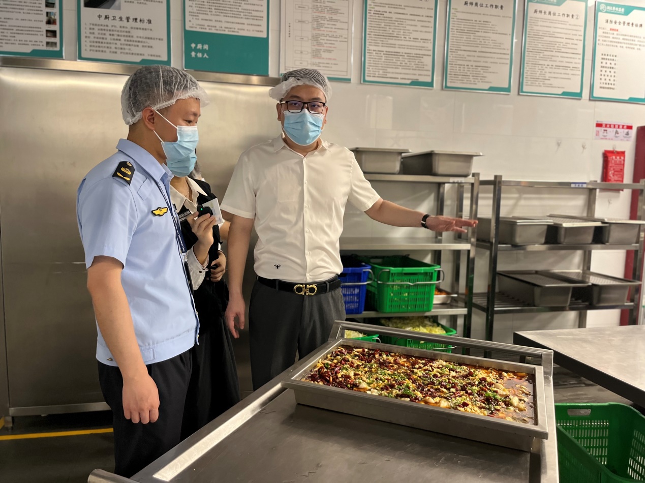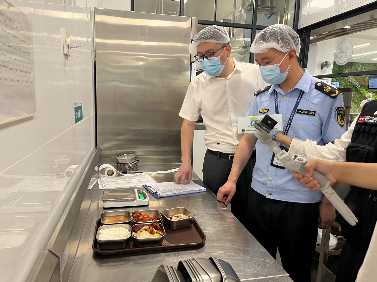 執(zhí)法人員現(xiàn)場對學(xué)校后廚進(jìn)行詳細(xì)檢查,分別從采購索證索票、進(jìn)貨查驗(yàn)、制作加工、備餐配送、場所和設(shè)施清潔維護(hù)、餐飲具清洗消毒、從業(yè)人員健康管理,制止餐飲浪費(fèi),食品安全總監(jiān)配置履職情況,以及落實(shí)主體責(zé)任的“日管控周排查月調(diào)度”制度等方面進(jìn)行詳細(xì)檢查。經(jīng)檢查,整體情況良好,但存在部分細(xì)節(jié)問題,如水產(chǎn)品刀具分類可更細(xì)致、操作臺積水需清理、面點(diǎn)間的食材存放需避免陽光直射等,針對檢查過程中發(fā)現(xiàn)的問題,執(zhí)法人員現(xiàn)場責(zé)令學(xué)校限期整改到位。同時(shí),快檢工作人員對餐廳使用的食材進(jìn)行了抽檢,結(jié)果均為陰性。