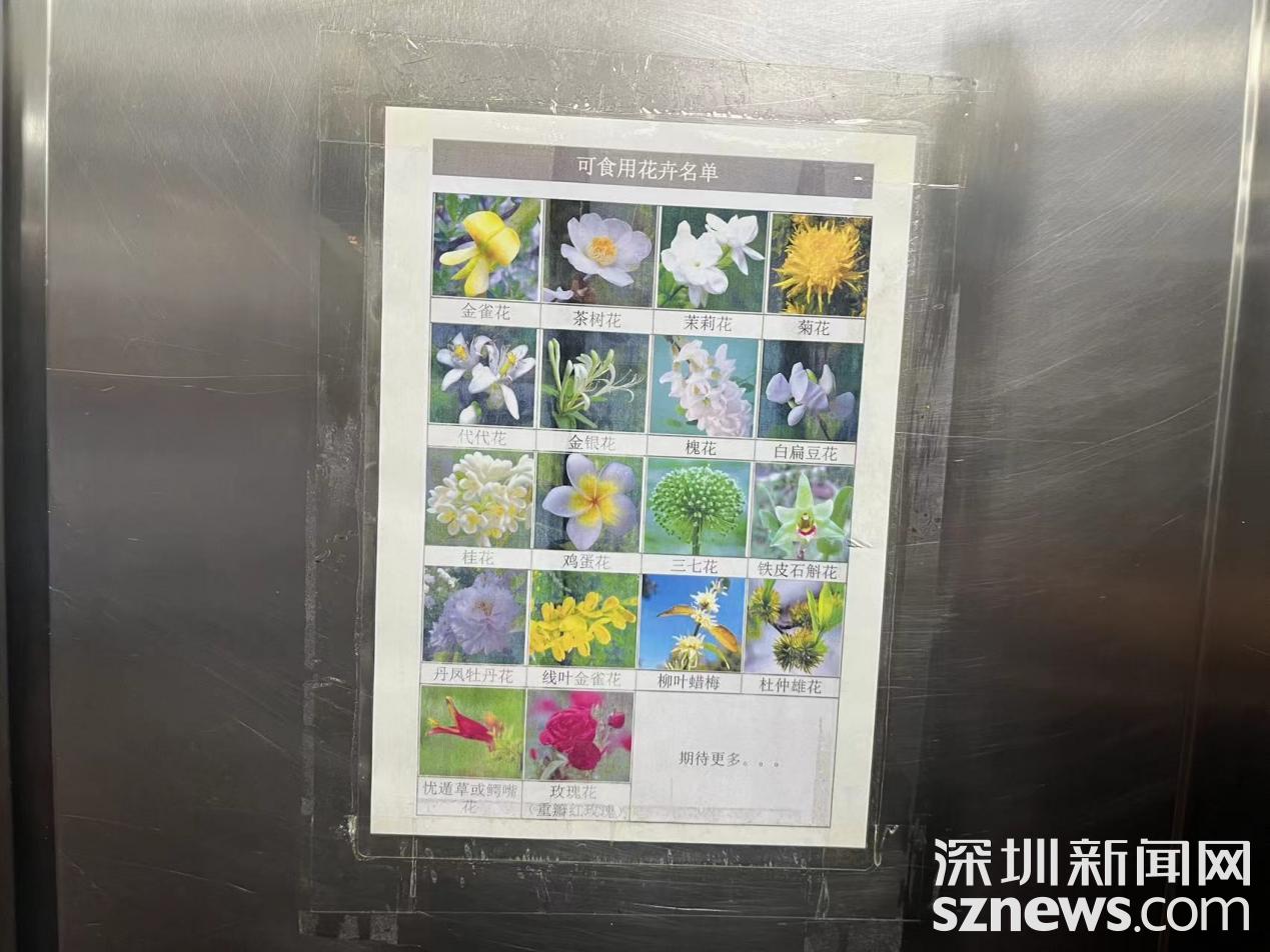 后廚分為預(yù)處理區(qū)、操作區(qū)、冷食專間、留樣區(qū)、糕點間、洗消區(qū)等區(qū)域。在后廚操作區(qū),執(zhí)法人員隨機查看調(diào)料標簽,均在保質(zhì)期內(nèi);冰箱食材貼有相應(yīng)標簽,且表面特別張貼了“可食用花卉名單”。專間內(nèi),冰柜中食材均有相應(yīng)標簽,且分區(qū)域存儲,無混放現(xiàn)象;留樣冰箱中的樣品重量、時間、標簽及臺賬記錄均符合要求。