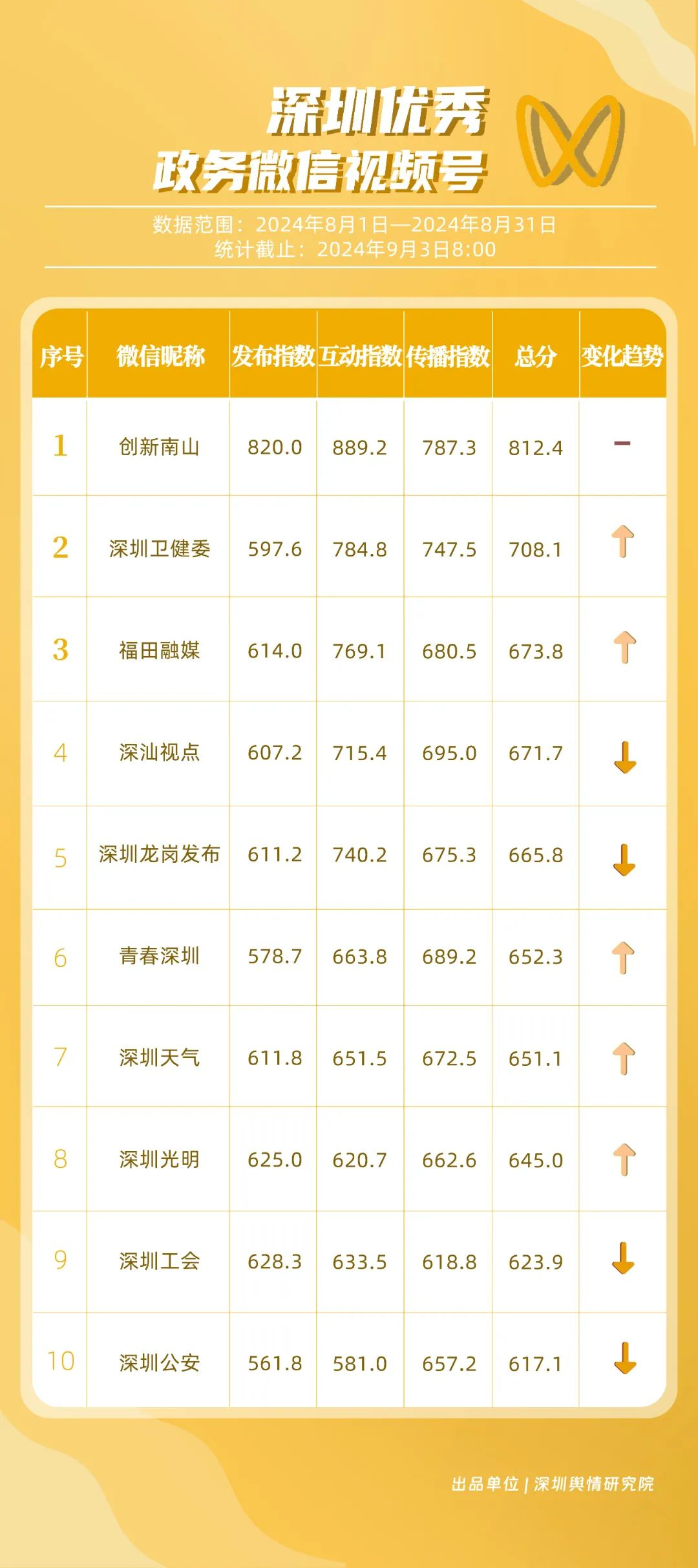 《深圳優(yōu)秀政務(wù)新媒體矩陣》2024年8月榜單如期而至,讓我們一同期待,哪些矩陣能夠在激烈的競(jìng)爭(zhēng)中脫穎而出,成為引領(lǐng)政務(wù)新媒體服務(wù)與創(chuàng)新的典范。