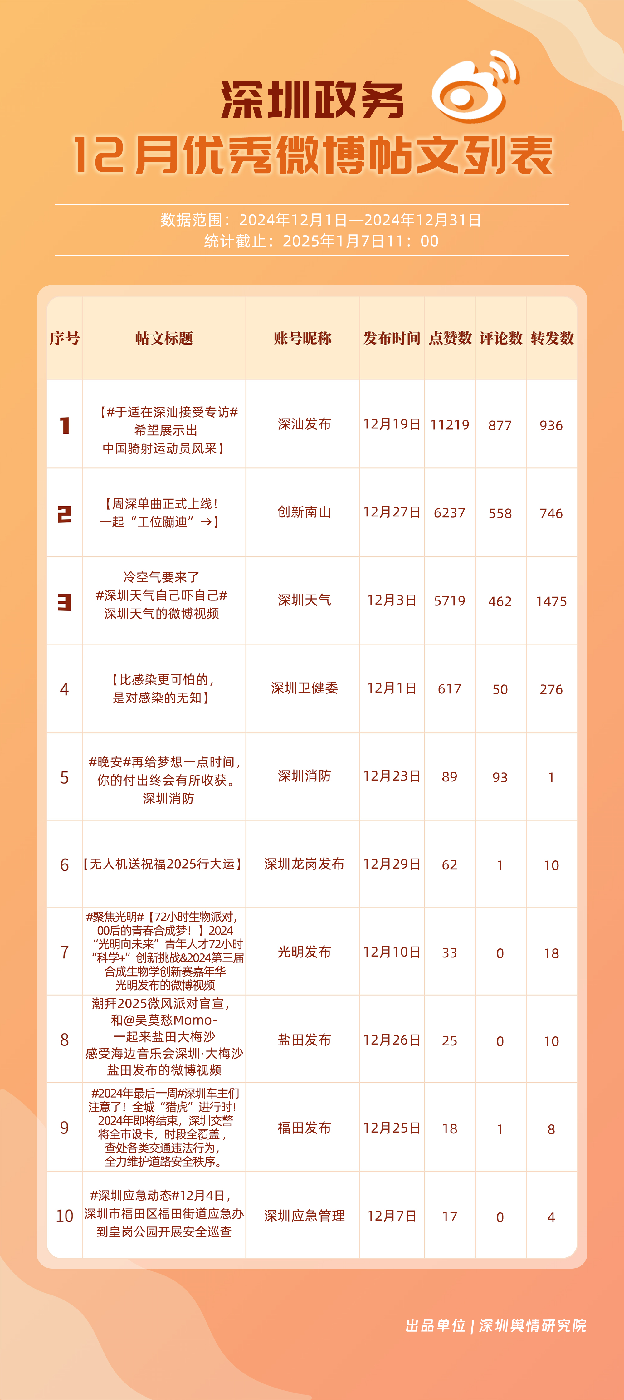 四、12月深圳優(yōu)秀政務(wù)新媒體賬號