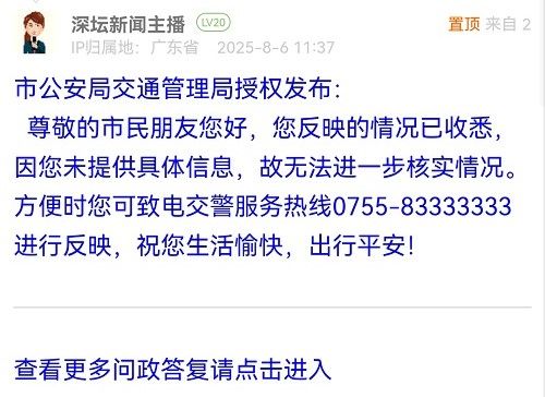 各職能單位如需對(duì)網(wǎng)友反映的問題進(jìn)行回應(yīng),可在深圳論壇注冊(cè)官方賬號(hào)并通過(guò)認(rèn)證,回帖進(jìn)行回應(yīng)。