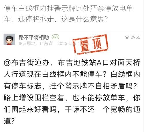 針對(duì)市民提及“白線框內(nèi)有停車標(biāo)志,掛個(gè)警示牌不自相矛盾嗎?”的問題。經(jīng)核實(shí),市民提及的問題處已被規(guī)劃為不可停放區(qū)域,禁停標(biāo)識(shí)及鐵馬圍擋是為清除白線框施工而設(shè)置的臨時(shí)空間預(yù)留措施,對(duì)此給市民帶來(lái)的誤解以及不便,我們深表歉意。目前該處白線停車框及禁停標(biāo)識(shí)已一并清除。