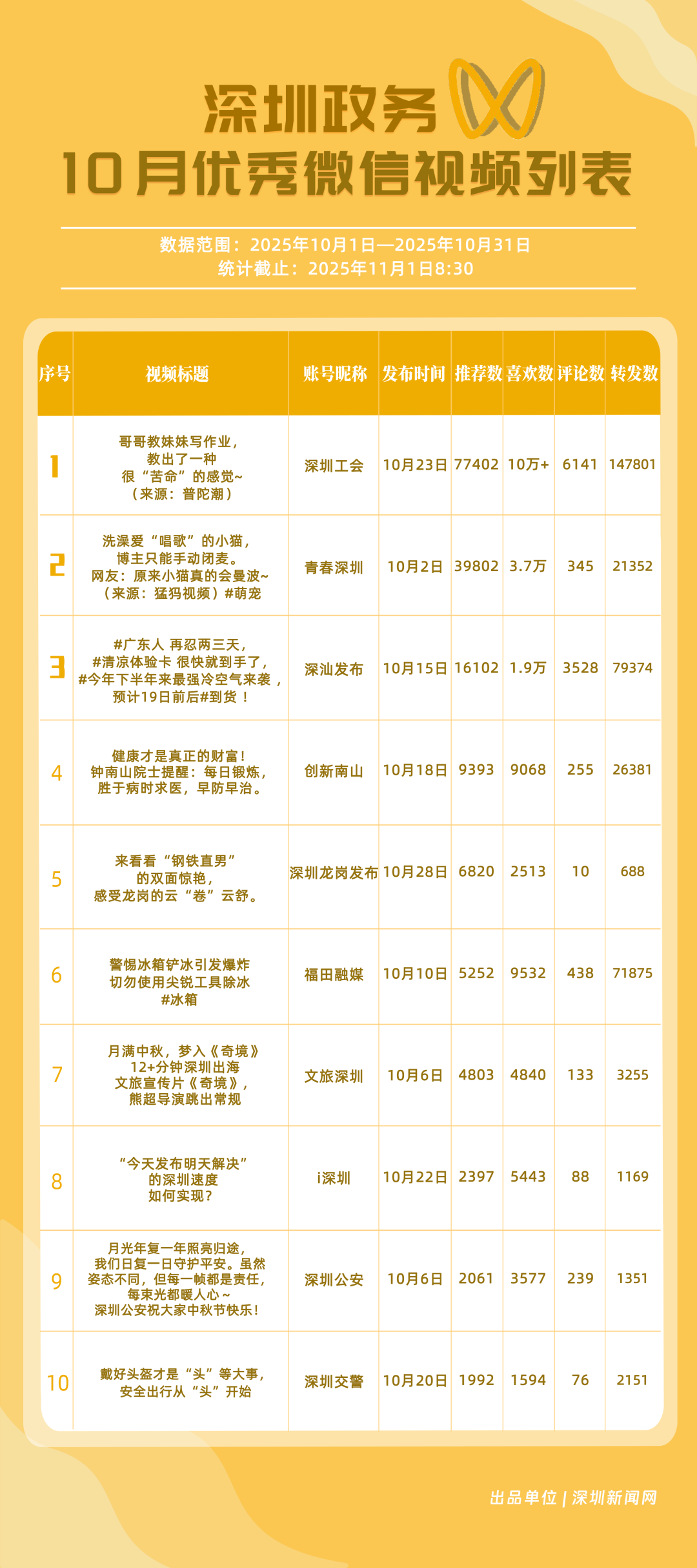 四、10月深圳優(yōu)秀政務(wù)新媒體賬號