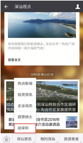 入駐的黨政自媒體:之前入駐的深圳發(fā)布、市交委、公安發(fā)布、政協(xié)、民政、公積金管理中心、市質(zhì)監(jiān)、工務(wù)署、司法、衛(wèi)計委、口岸辦、人社、文博會之外,近期入駐的大V伙伴還有深汕視點、深圳通等。各區(qū)(新區(qū))官方微信公眾號均組團(tuán)入駐。