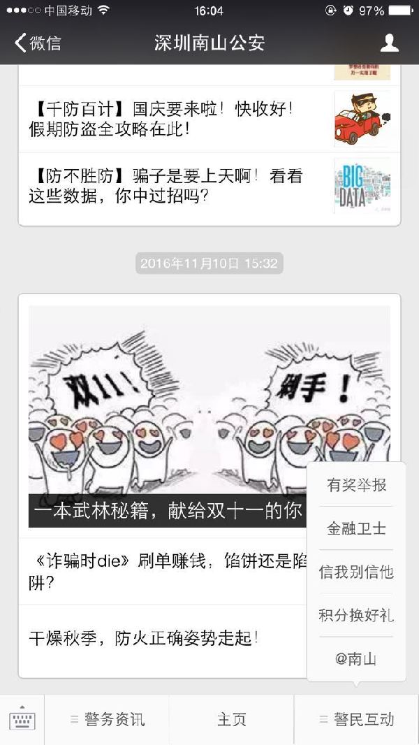 11月23日,深圳南山公安分局官方微信“深圳南山公安”正式入駐“@深圳”平臺(tái)。