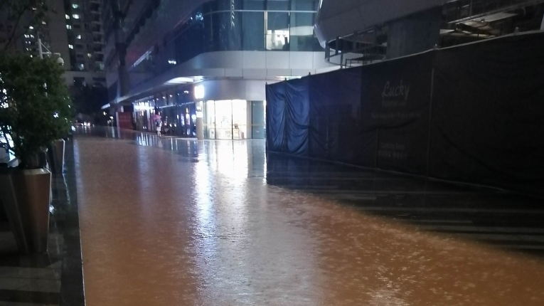 南山南海公園來(lái)福士廣場(chǎng)積水,回應(yīng):已清理淤泥堵塞